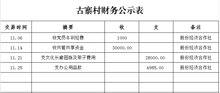 鸭暖镇古寨村11月财务公示表