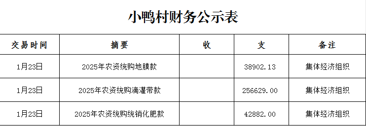 鸭暖镇小鸭村1月财务公示表