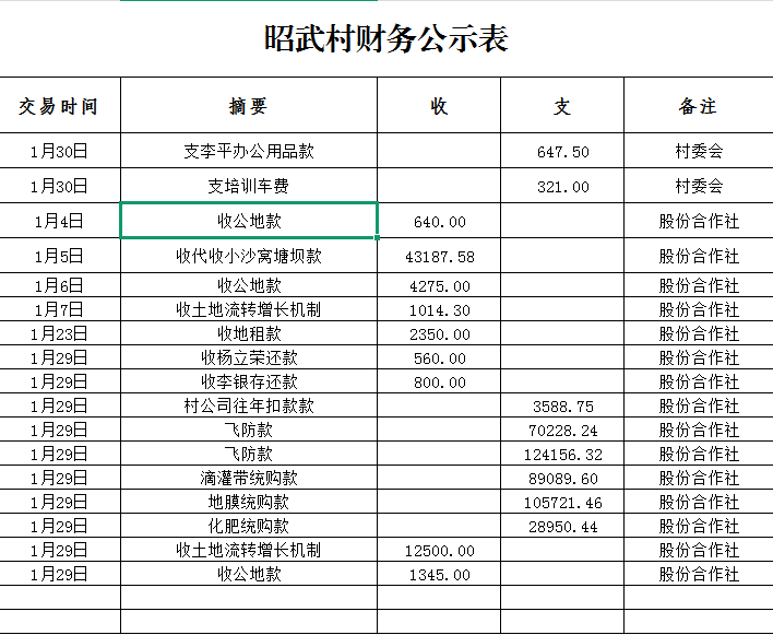 鸭暖镇昭武村1月财务公示表
