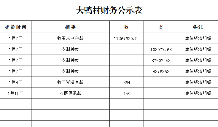 鸭暖镇大鸭村1月财务公示表
