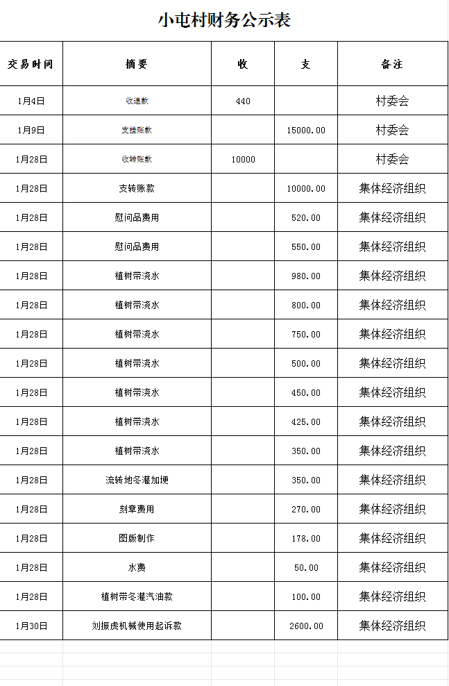 鸭暖镇小屯村1月财务公示表