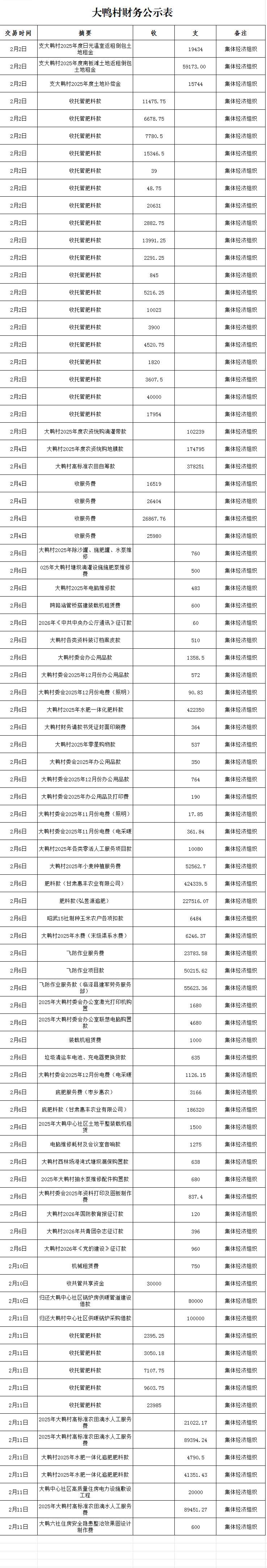 鸭暖镇大鸭村2月财务公示表