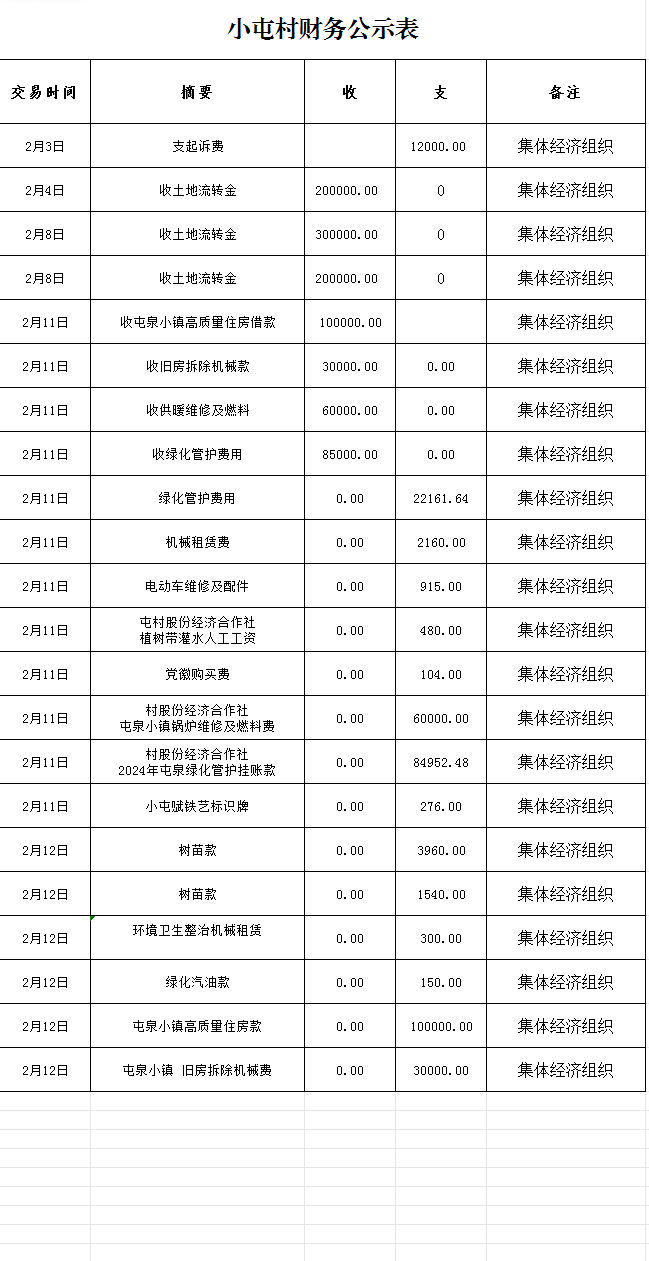 鸭暖镇小屯村2月财务公示表