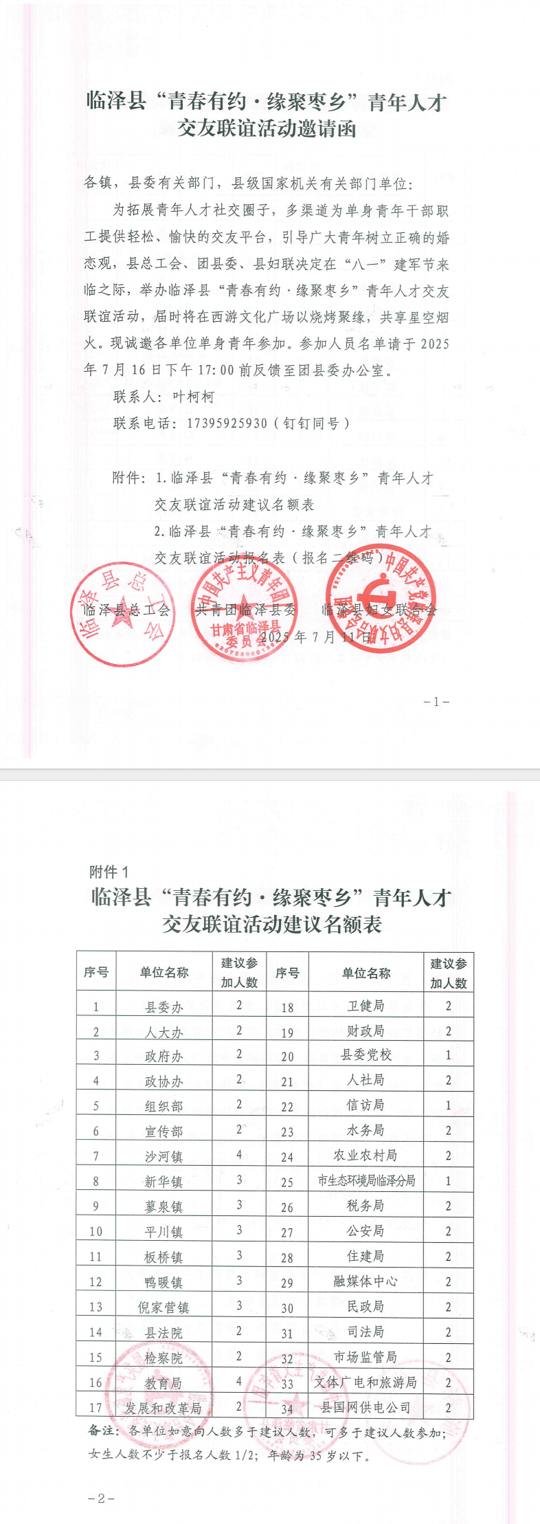 临泽县“青春有约·缘聚枣乡”青年人才交友联谊活动邀请函