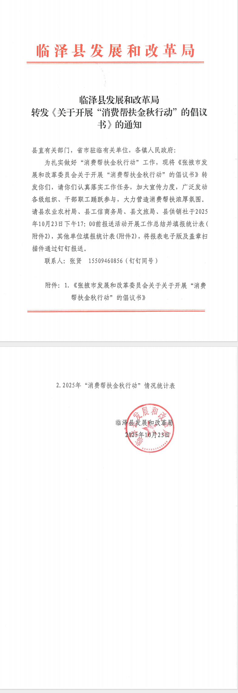 临泽县发展和改革局转发《关于开展“消费帮扶金秋行动”的倡议书》的通知
