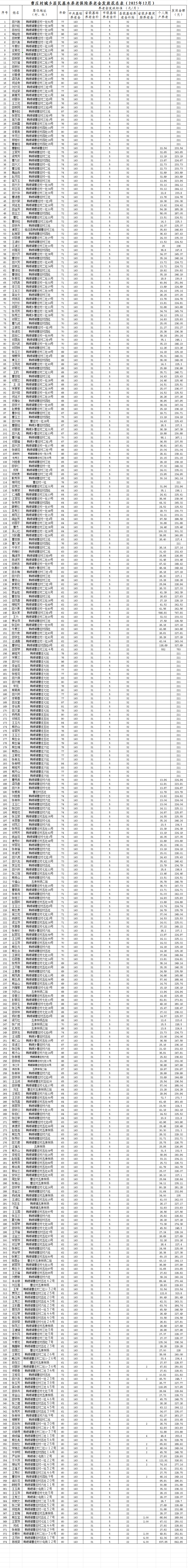 曹庄村城乡居民基本养老保险养老金发放花名表(2025年12月)