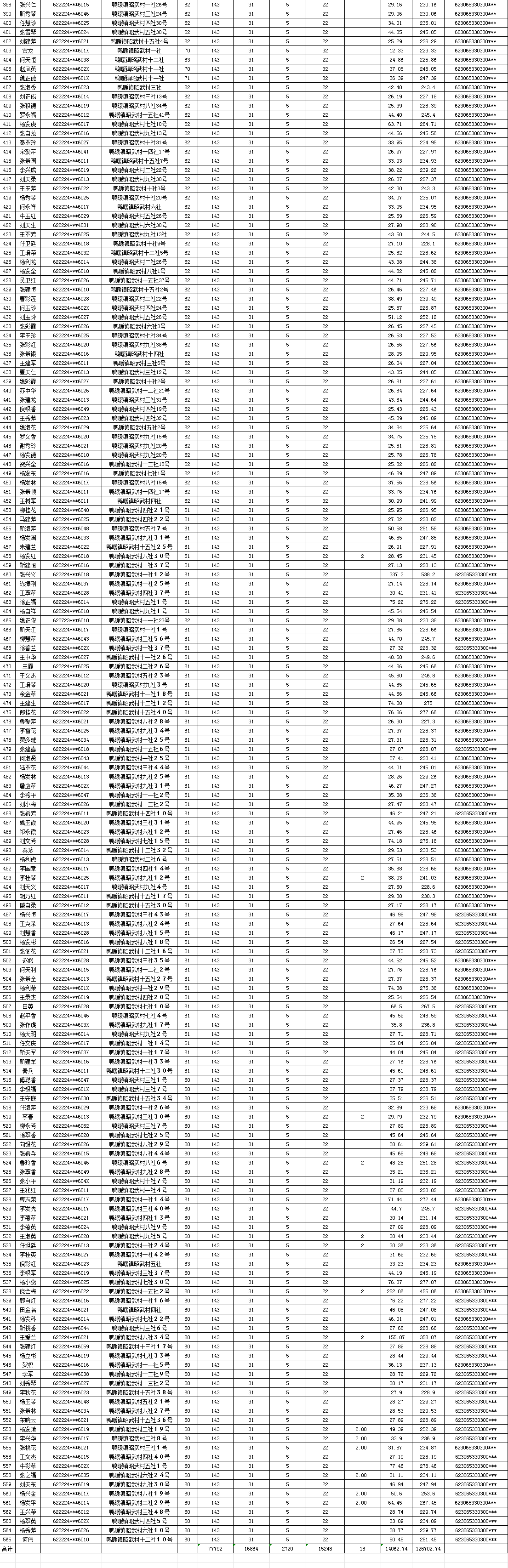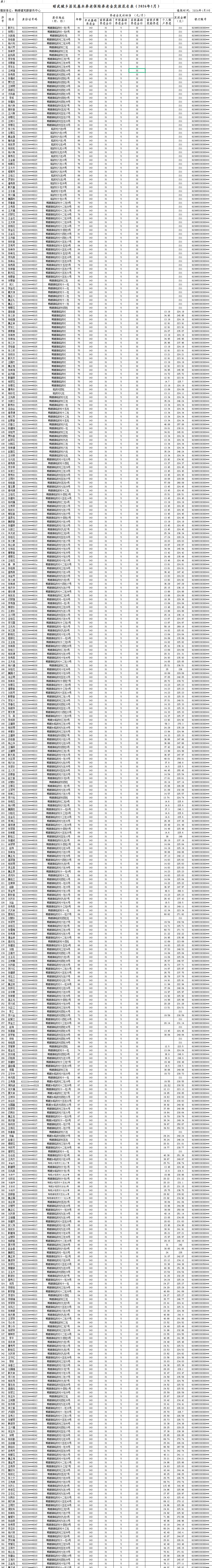 昭武村城乡居民基本养老保险养老金发放花名表(2026年1月)