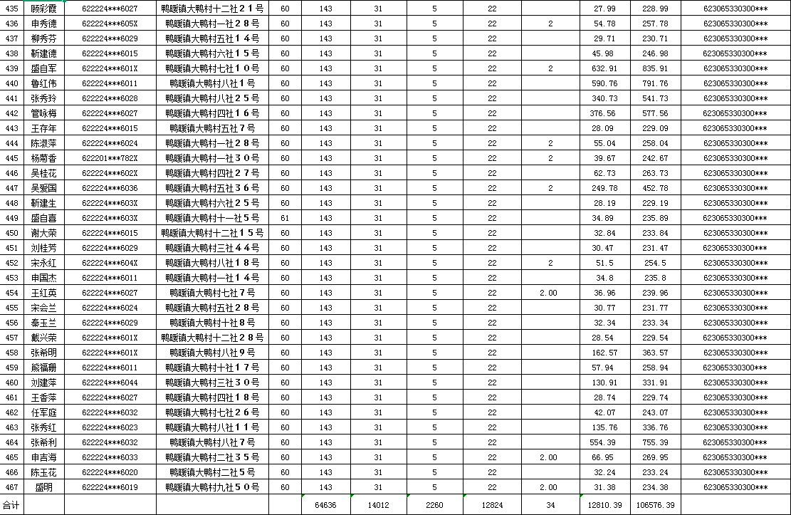大鸭村城乡居民基本养老保险养老金发放花名表(2026年1月)
