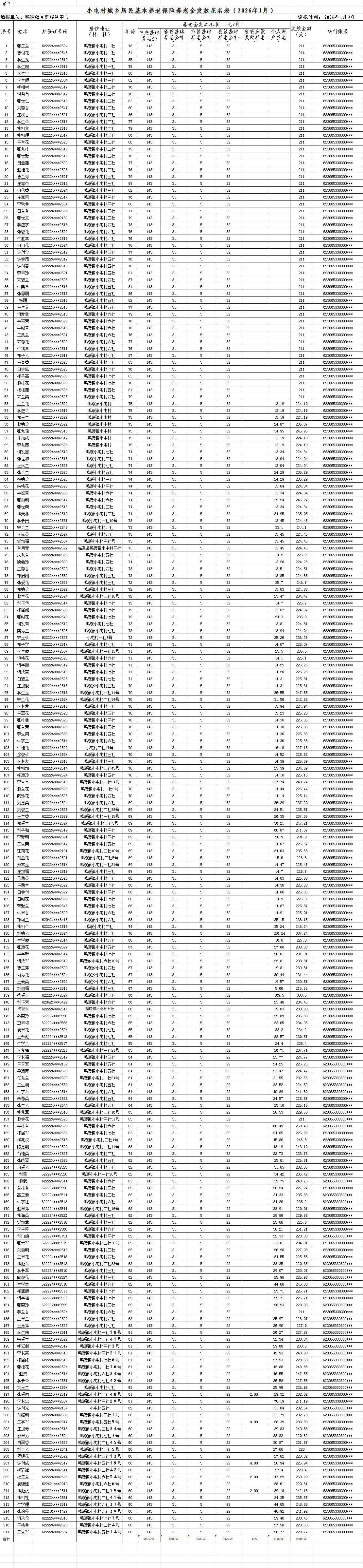 小屯村城乡居民基本养老保险养老金发放花名表(2026年1月)