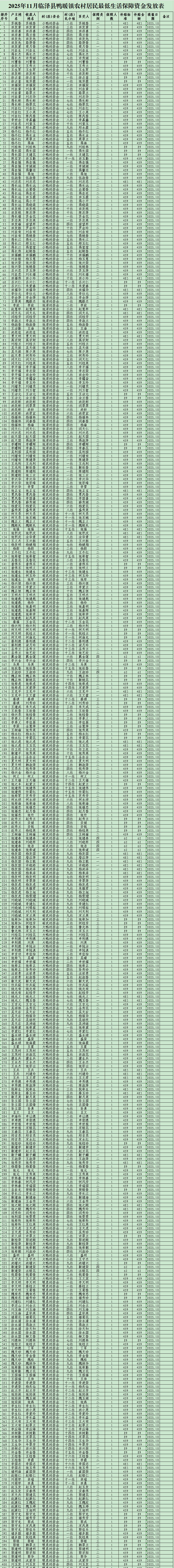 2025年11月临泽县鸭暖镇农村居民最低生活保障资金发放表