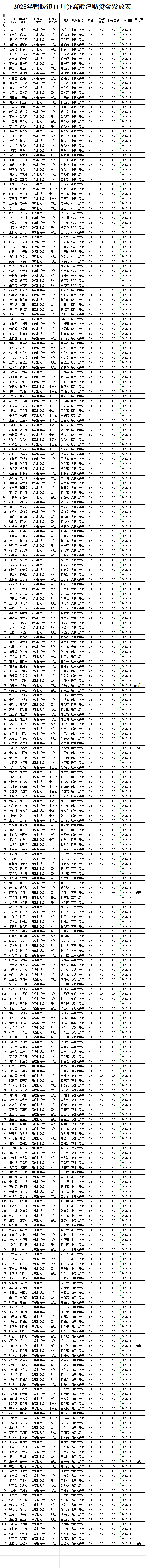2025年鸭暖镇11月份高龄津贴资金发放表