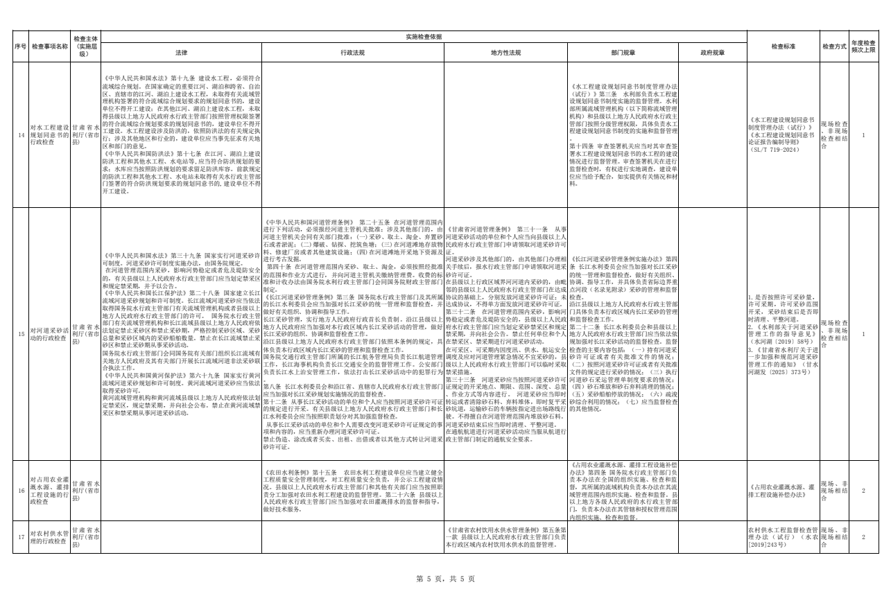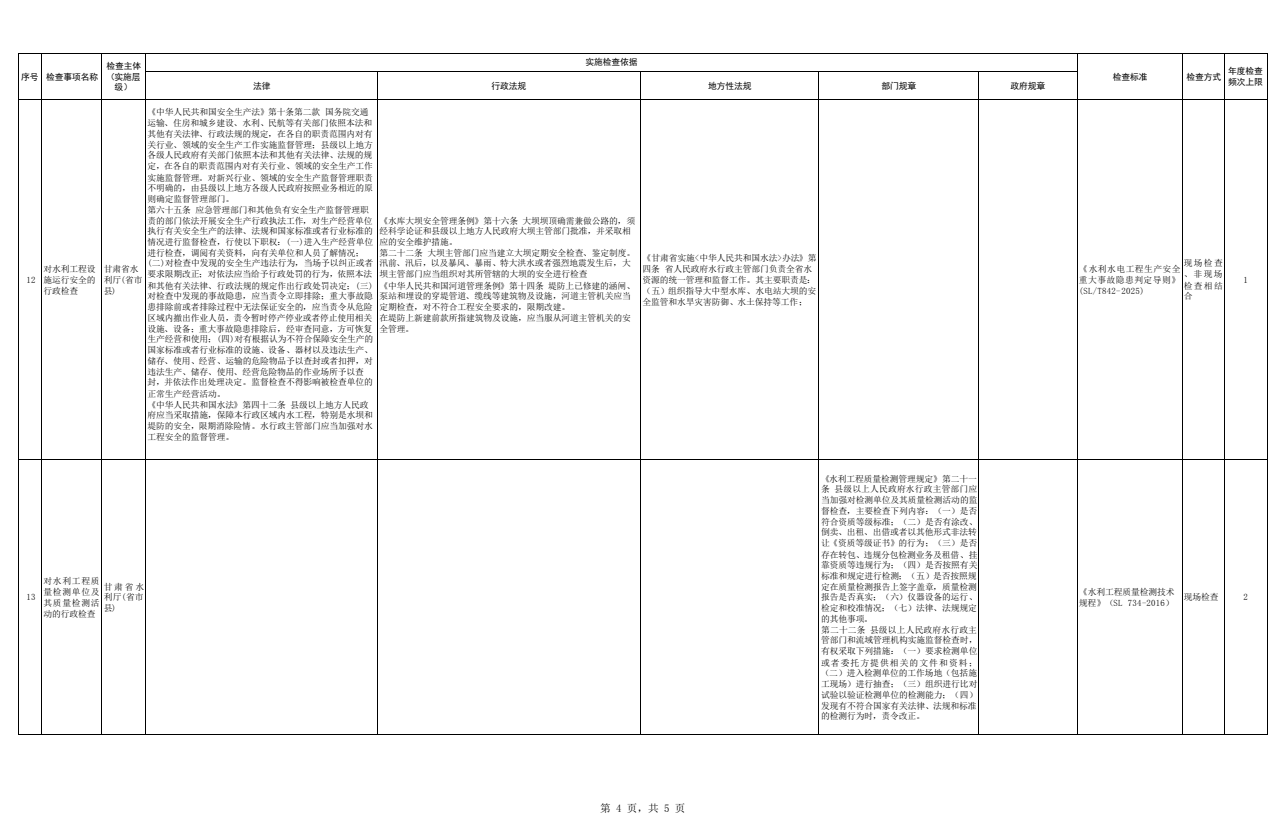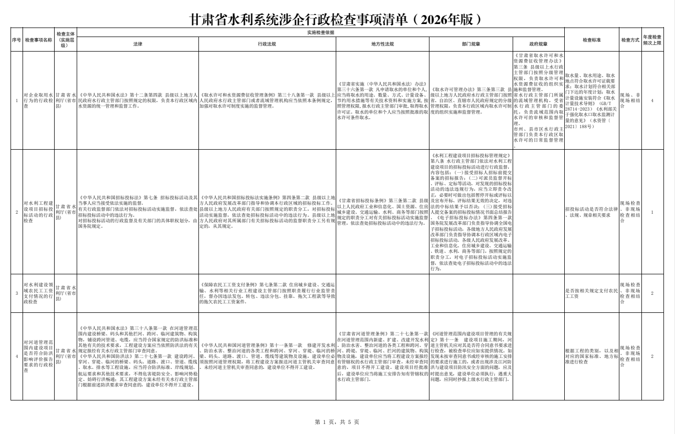 甘肃省水利系统涉企行政检查事项清单(2026年版)