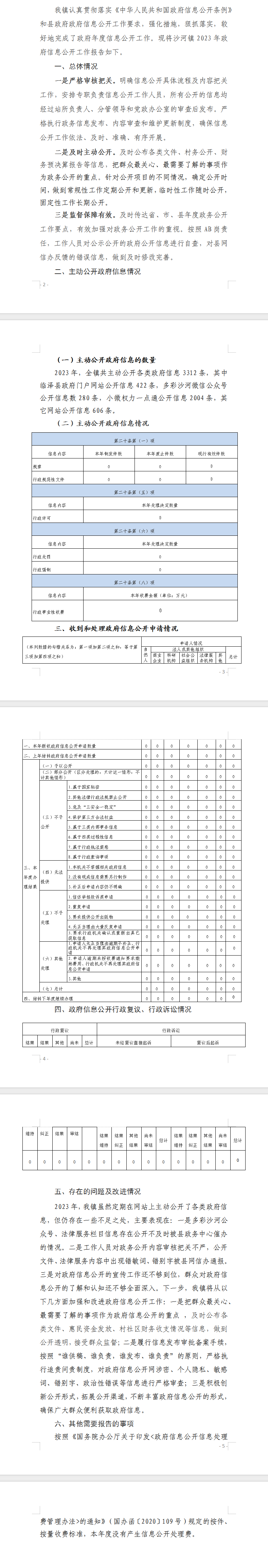 临泽县沙河镇2023年政府信息公开年度报告