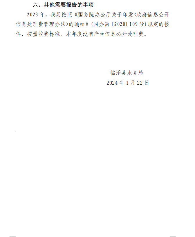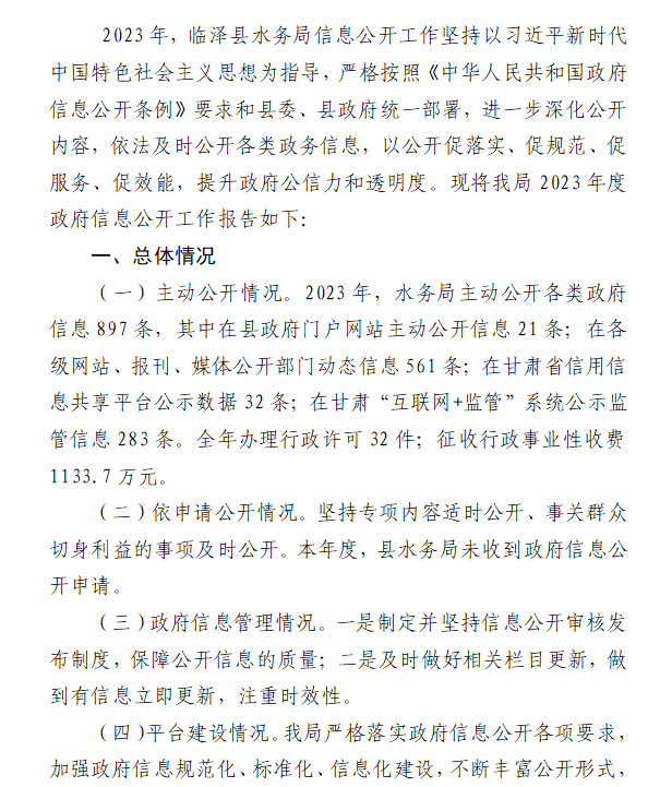 临泽县水务局2023年政府信息公开工作年度报告