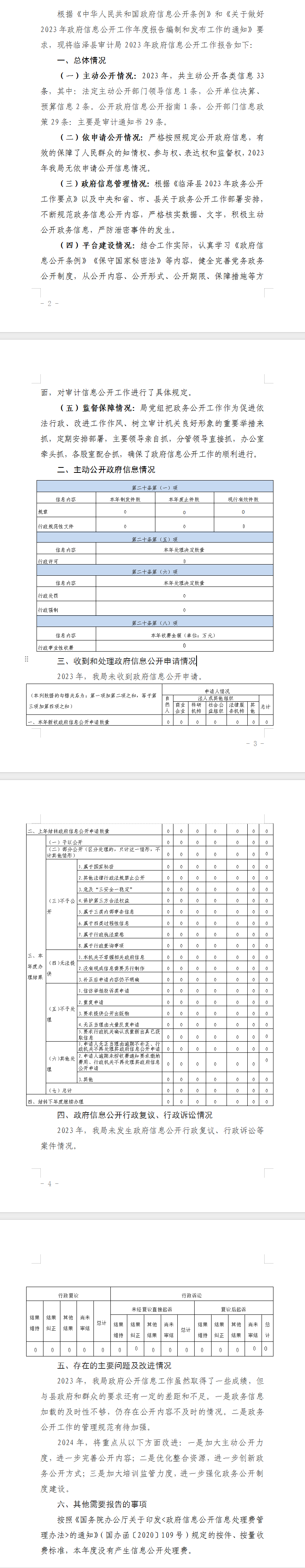 临泽县审计局 2023年政府信息公开工作年度报告