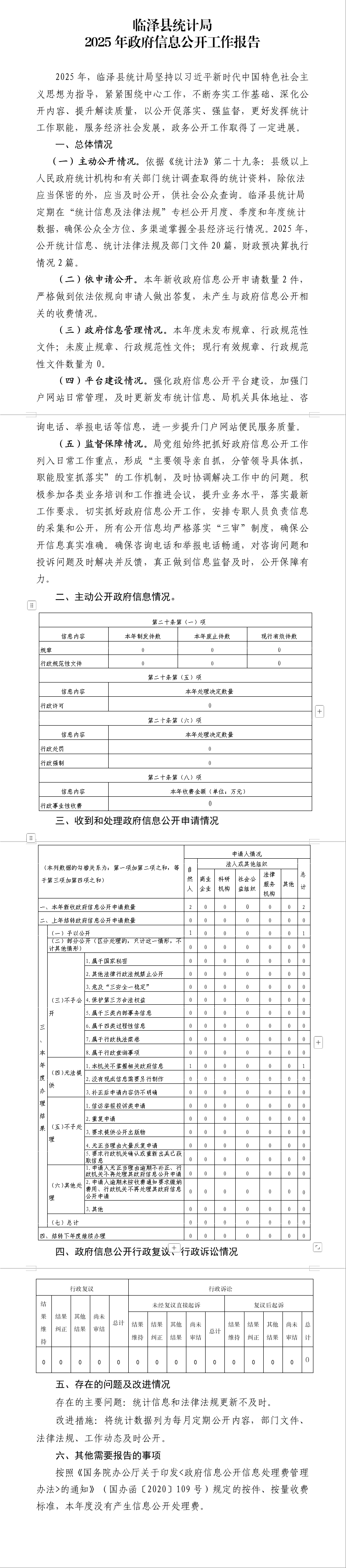 临泽县统计局2025年政府信息公开工作报告