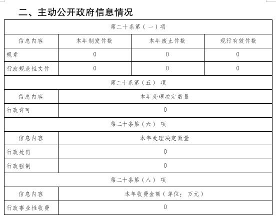 按照《国务院办公厅关于印发<政府信息公开信息处理费管理办法>的通知》(国办函〔2020〕109号)规定的按件、按量收费标准,本年度没有产生信息公开处理费。