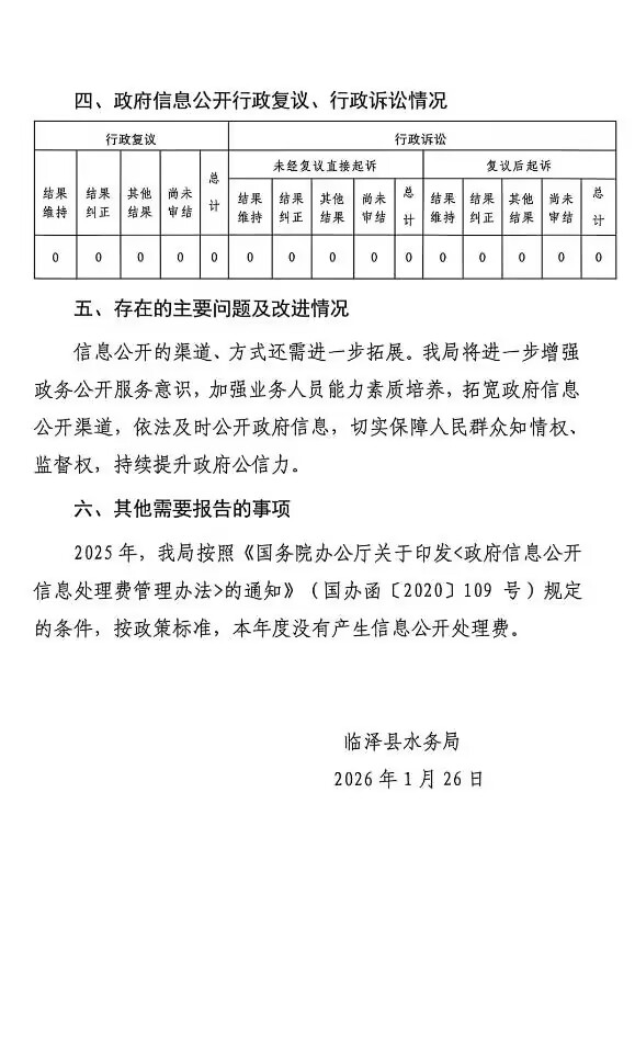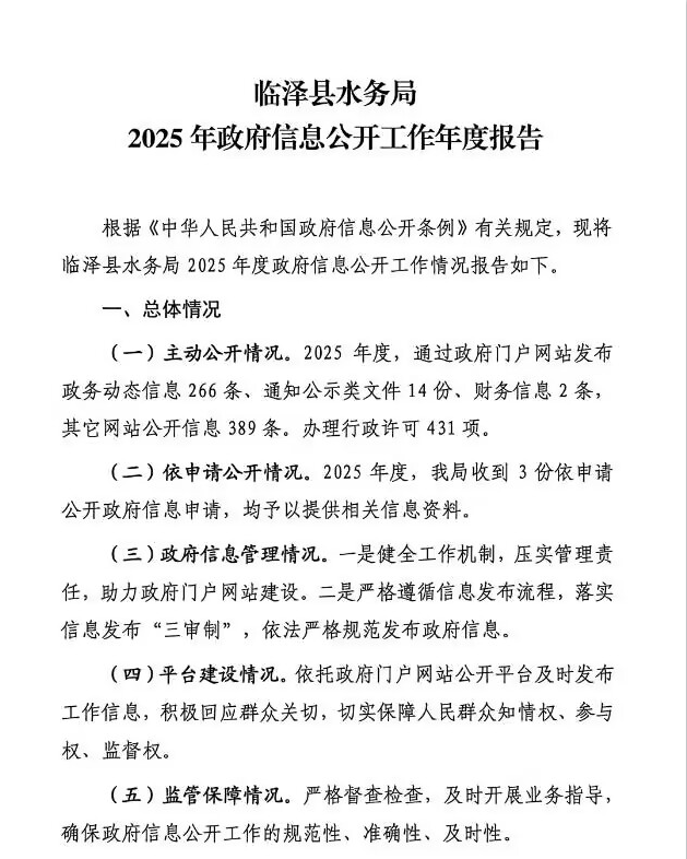 临泽县水务局2025年政府信息公开年度报告