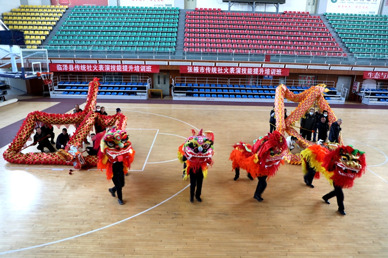 “本次培训班主要是根据我们临泽县的实际情况,邀请老师对我们的舞龙舞狮传统技艺,还有我们的锣鼓乐队、传统社火进行系统的培训。相信通过这次培训,能够让我们的表演技能逐步提升,让龙狮技艺在社会文化的普及与浸润中代代相传,为传统民俗赋能提气。”临泽县文体广电和旅游局干部易晓梅说。