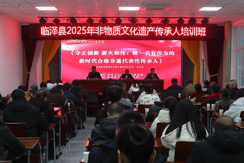 与社火技能培训同频共振的,是非遗传承的理论深化行动。临泽县文化馆开展“我们的中国梦·文化进万家”2025年临泽县非物质文化遗产保护传承专题培训。培训围绕“非遗保护传承的目标与路径”“非遗的当代价值与创新实践”等核心主题,推动全县非遗与文旅、产业、科技深度融合。