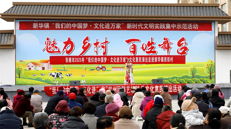 “张掖市2025年‘我们的中国梦·文化进万家’惠民演出活动今天走进临泽县新华镇,能够在这样的舞台上为大家演出,我们感到非常高兴,而且现场的观众也非常热情,我们希望能够把更好的文艺精品和文化作品带给观众朋友们。”张掖市文化馆副研究馆员徐鹏说。