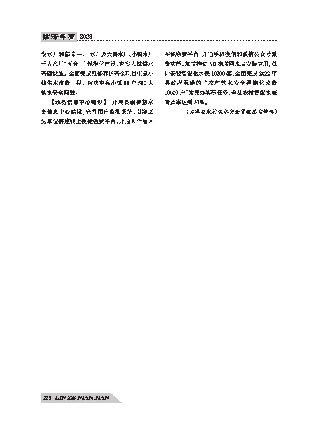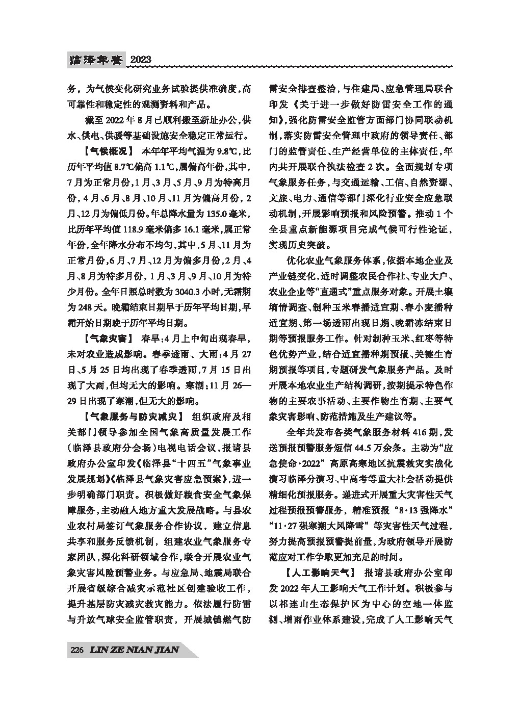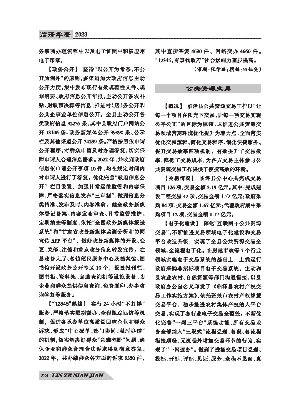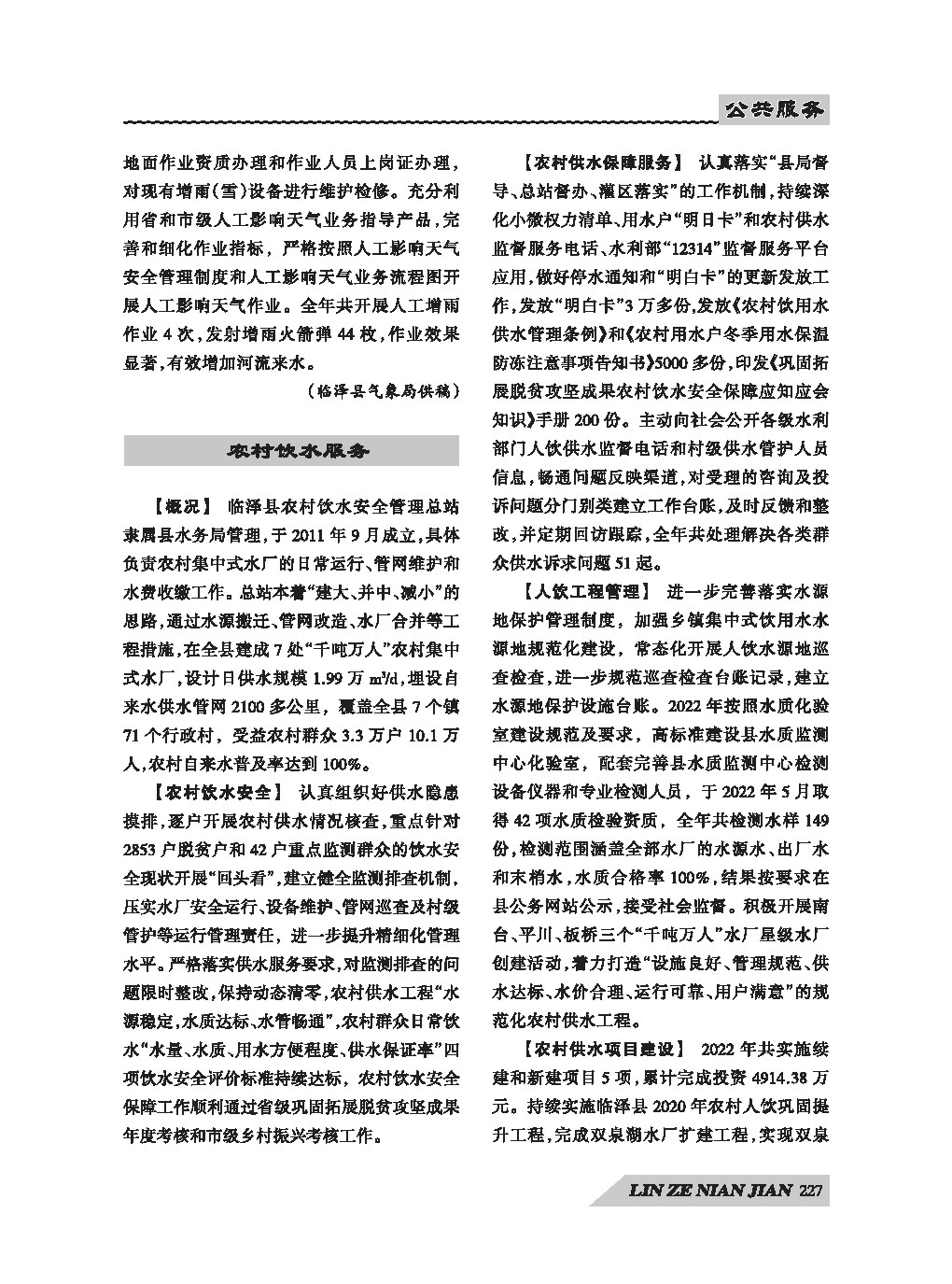 《临泽年鉴》(2023)公共服务