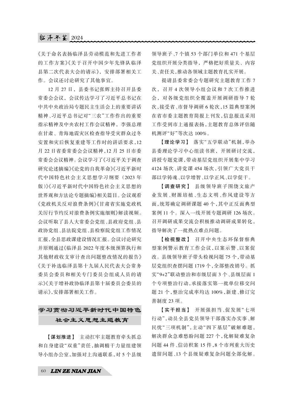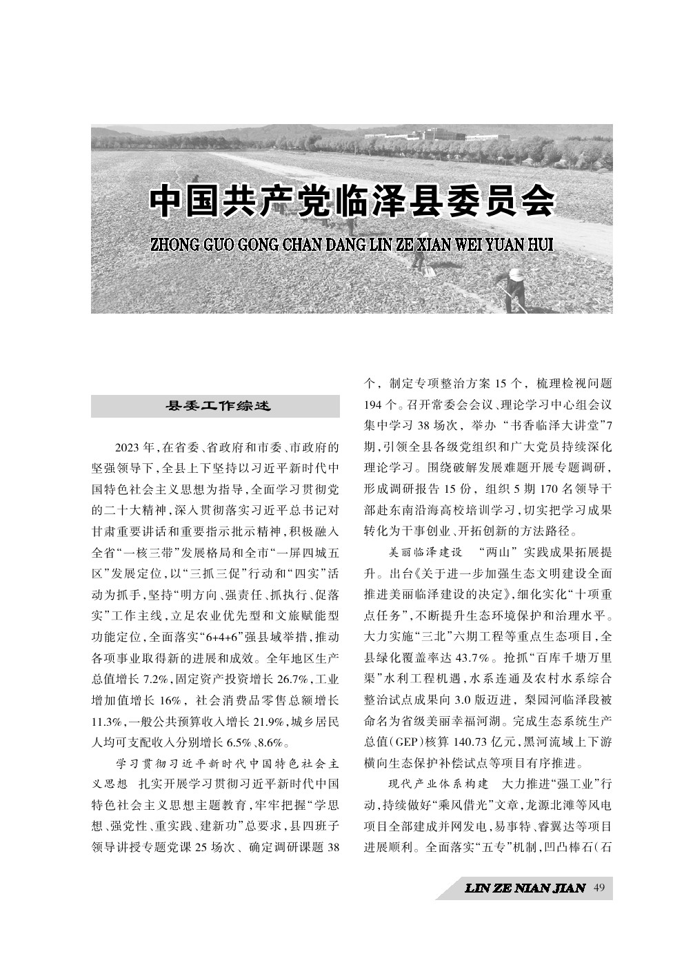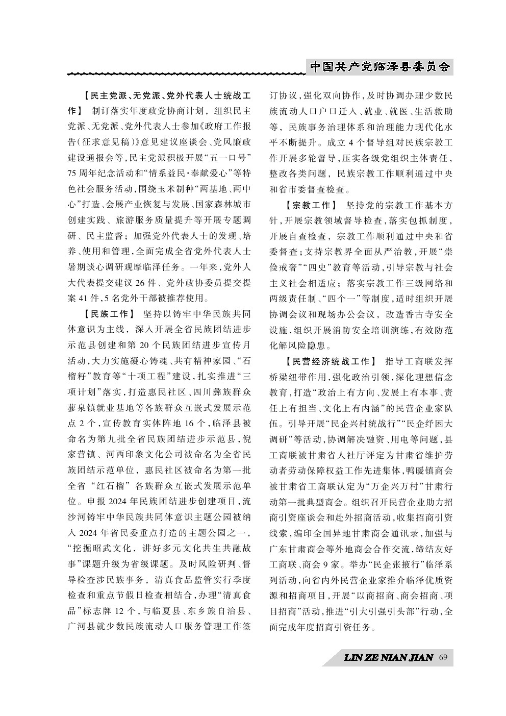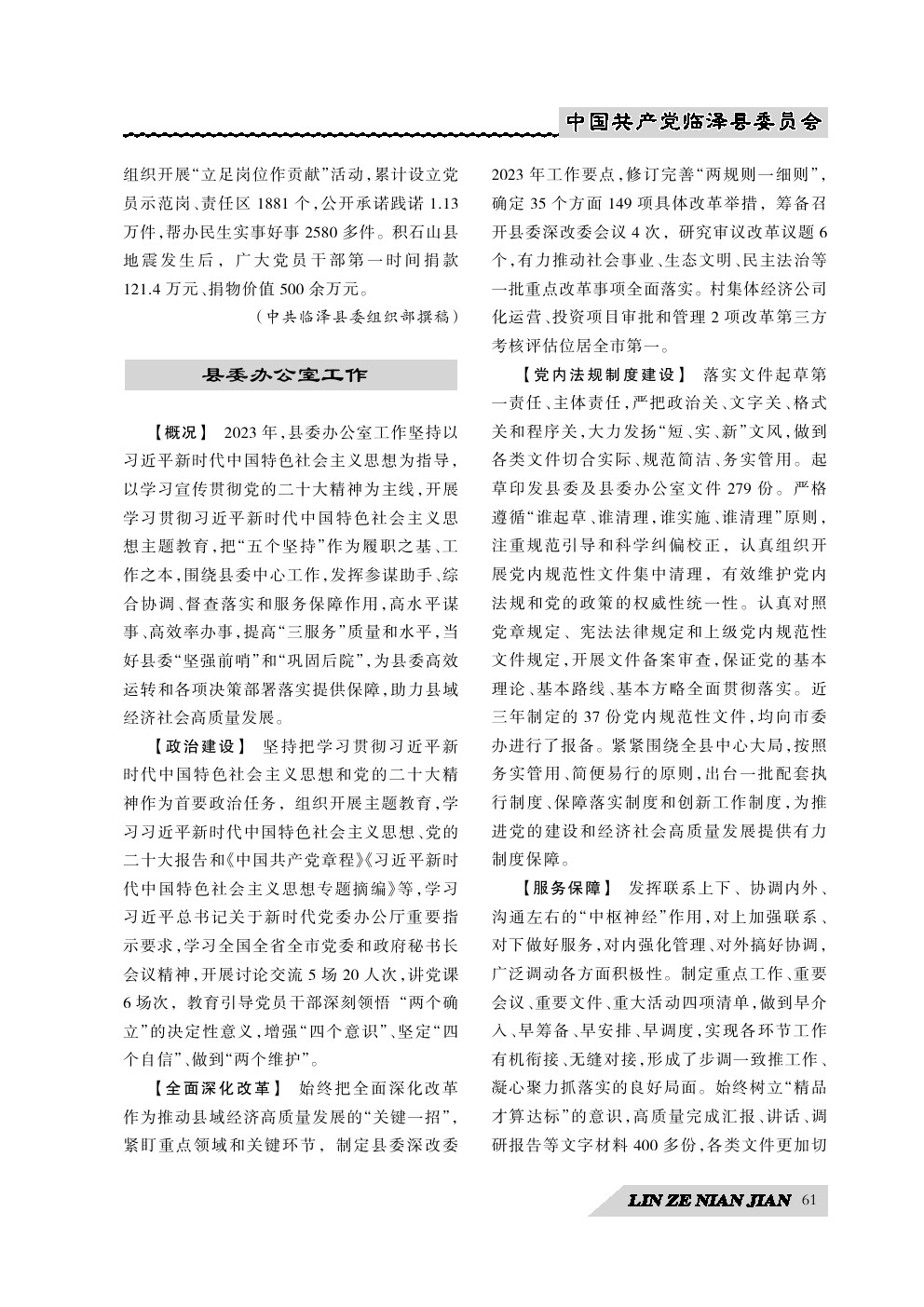 《临泽年鉴》(2024)中国共产党临泽县委员会