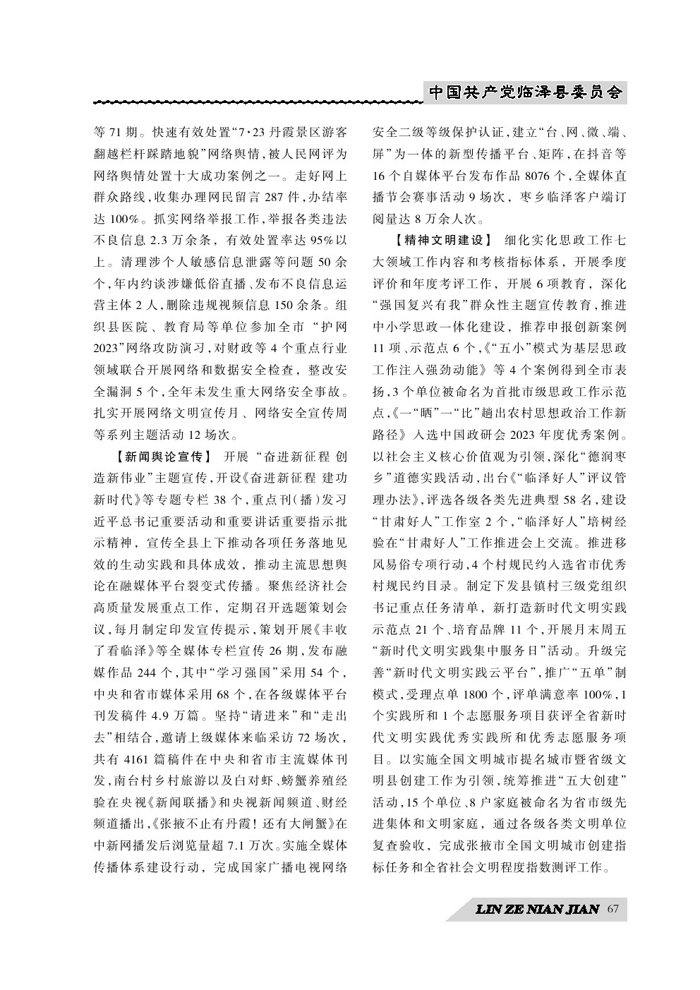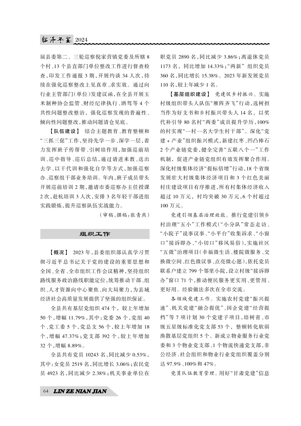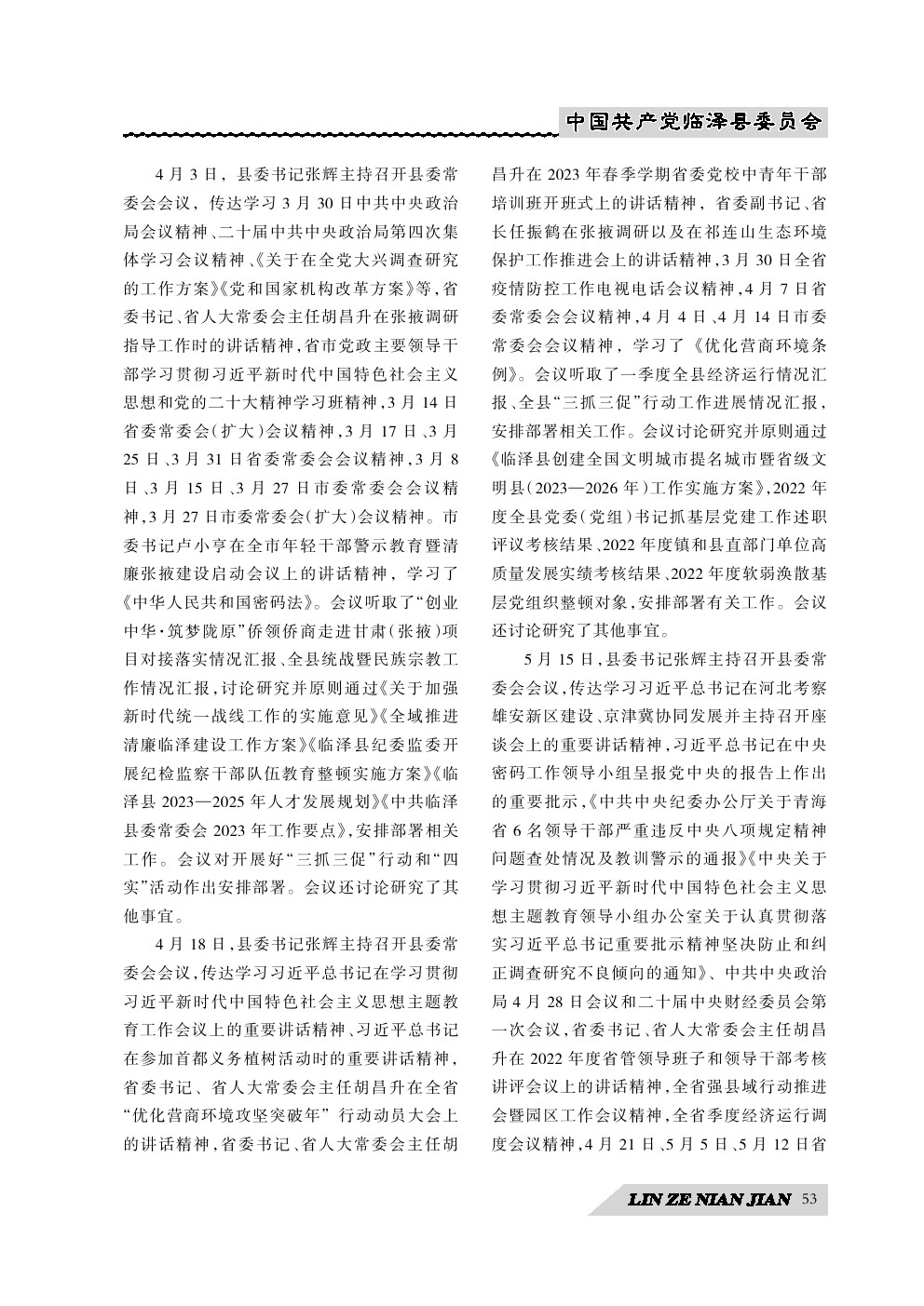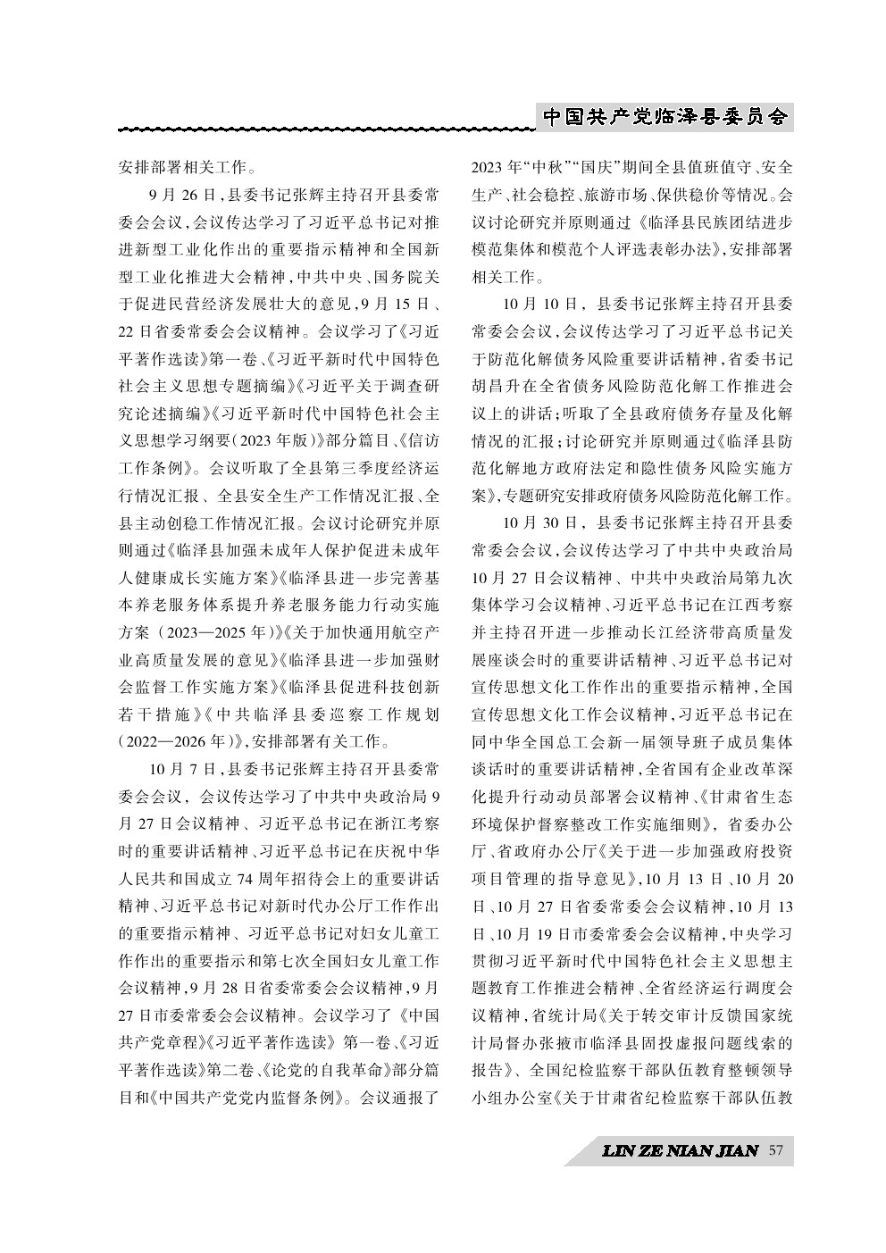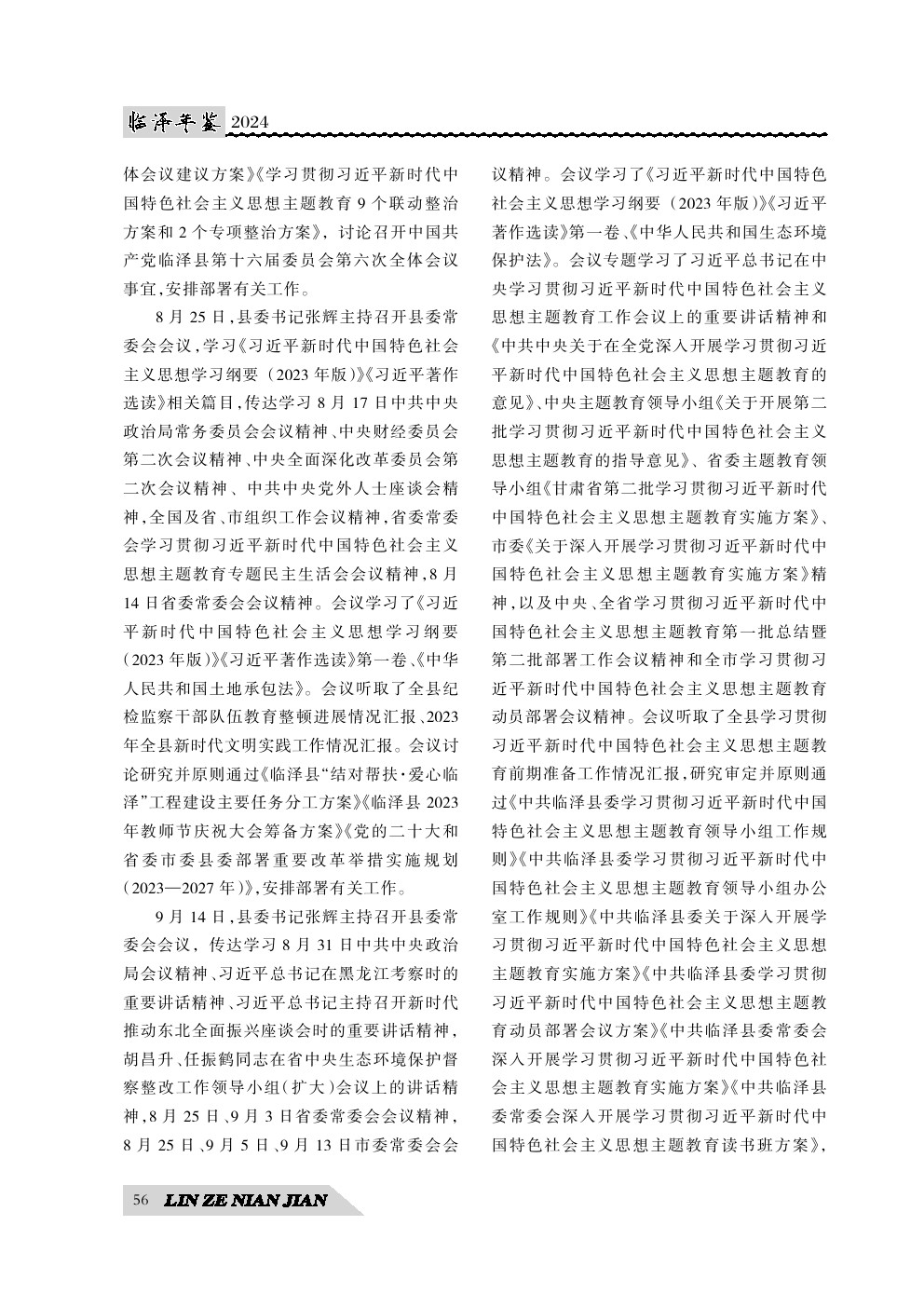 《临泽年鉴》(2024)中国共产党临泽县委员会