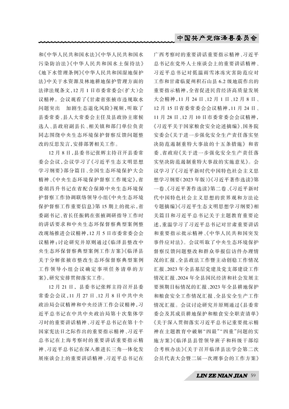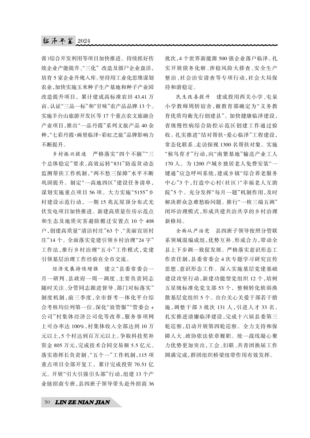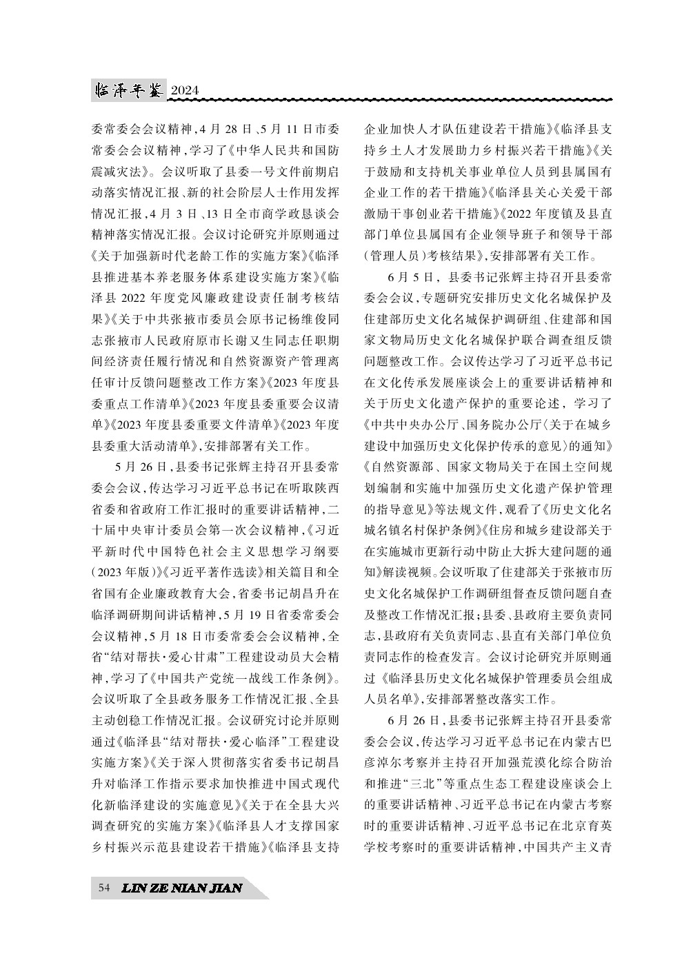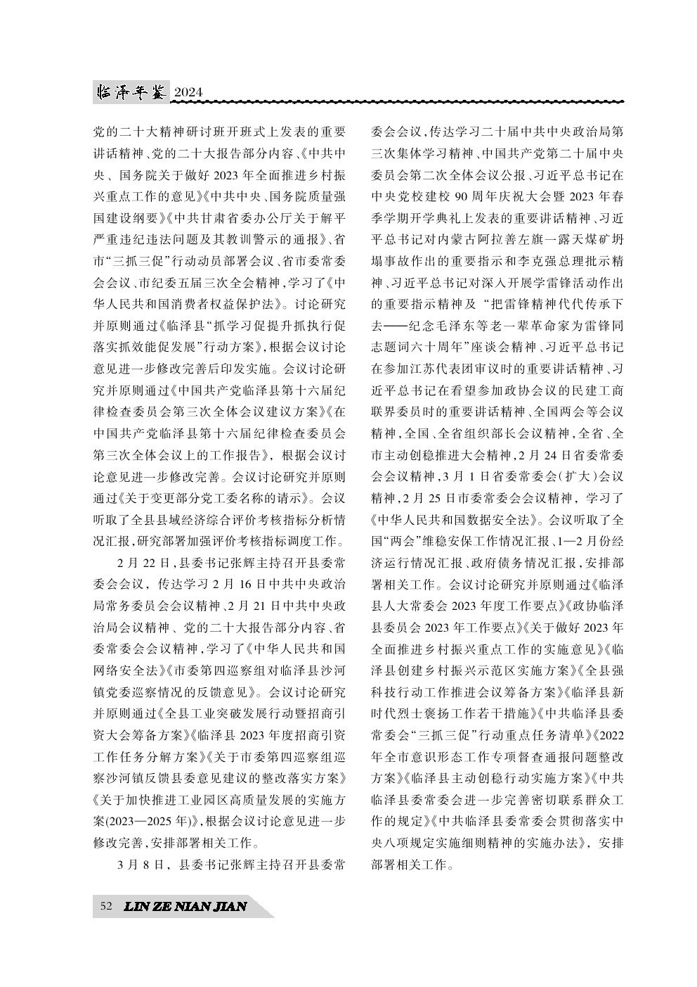 《临泽年鉴》(2024)中国共产党临泽县委员会
