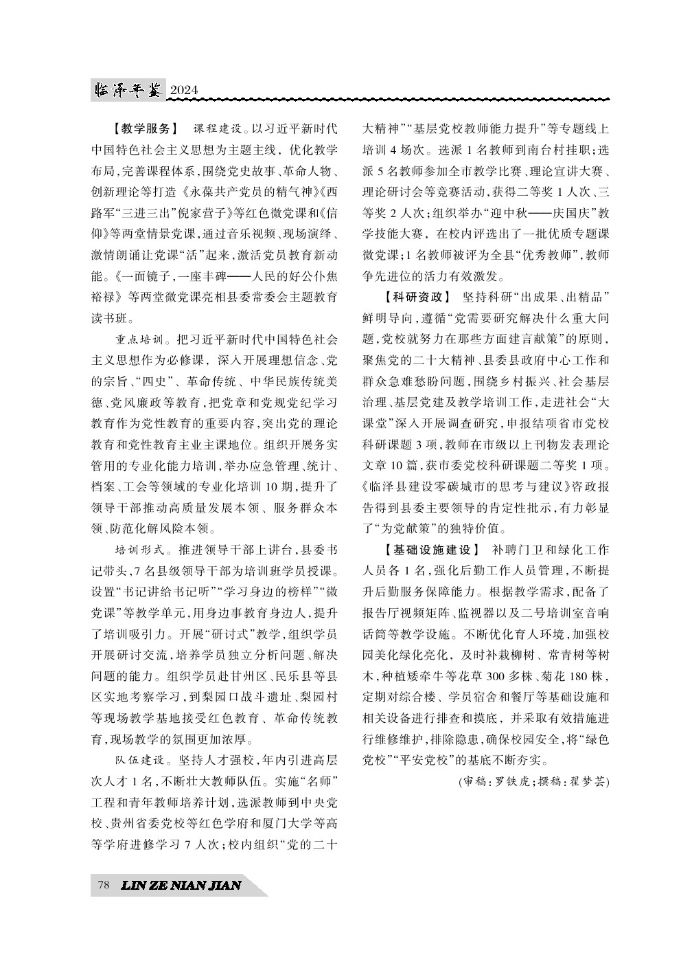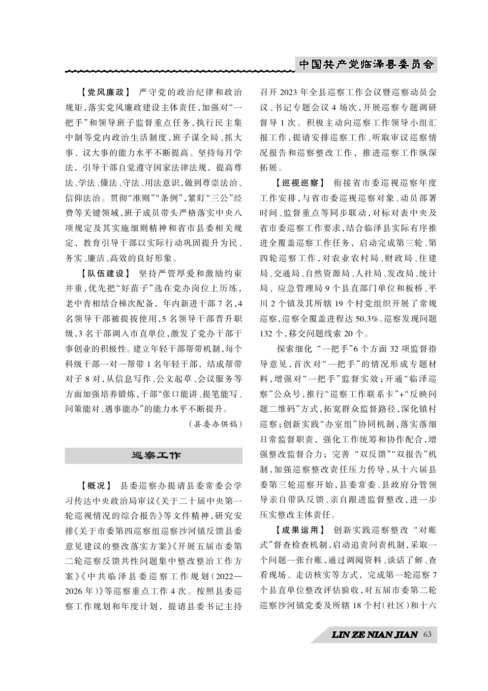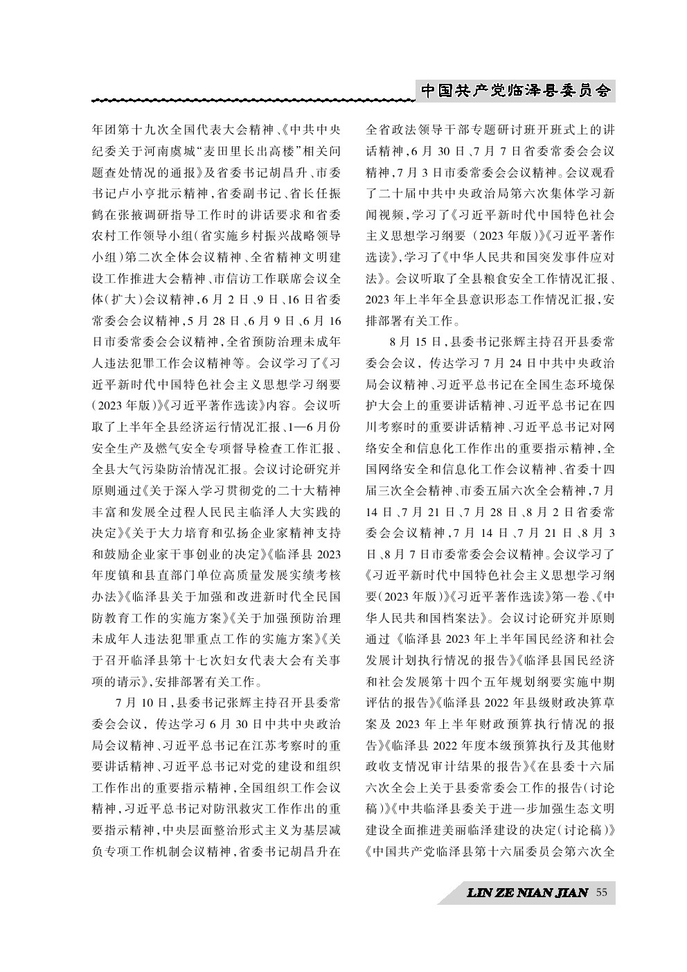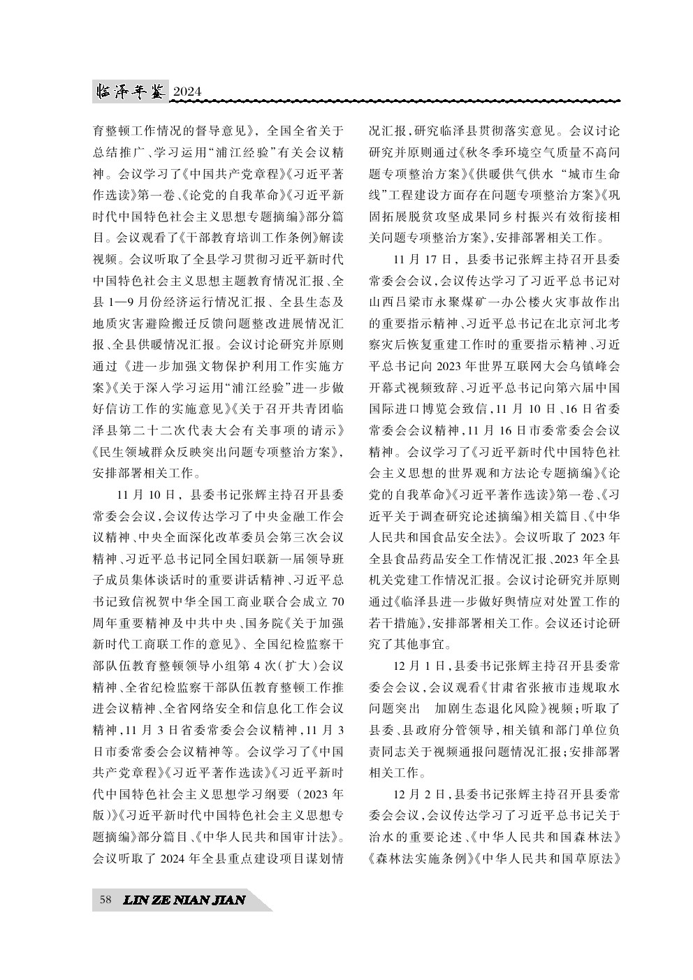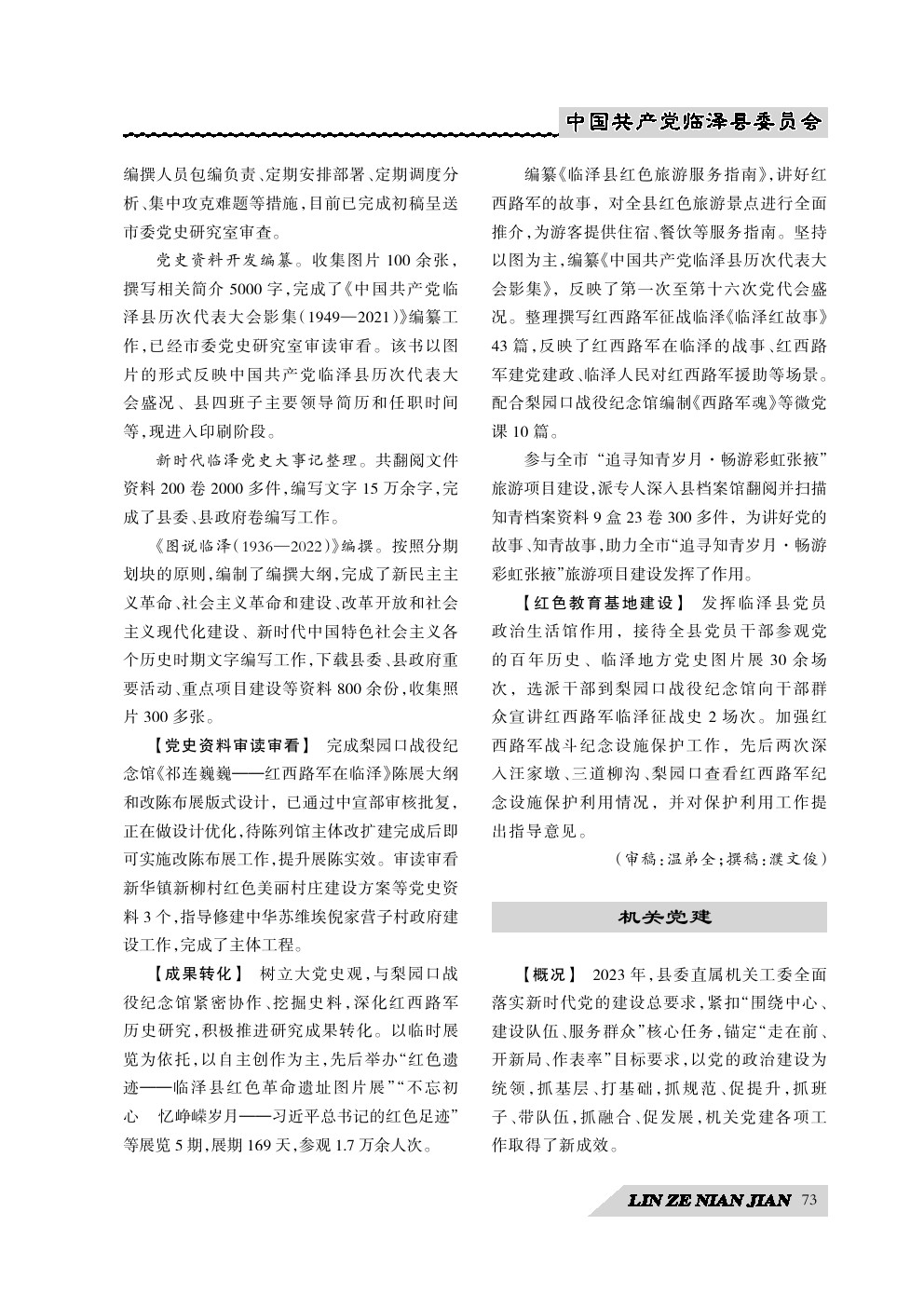 《临泽年鉴》(2024)中国共产党临泽县委员会