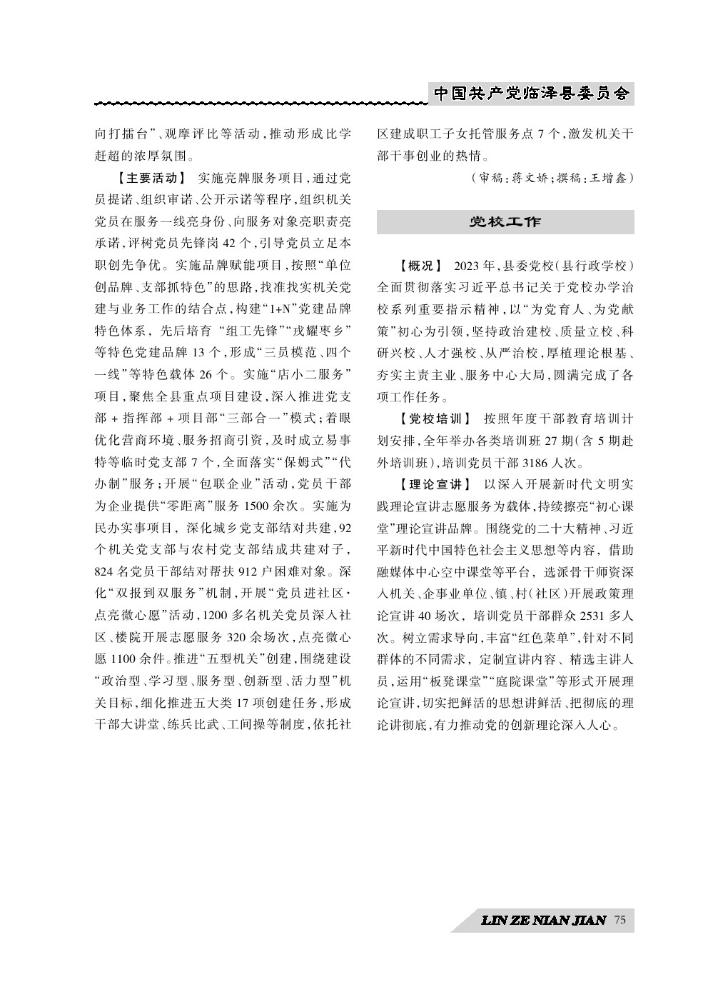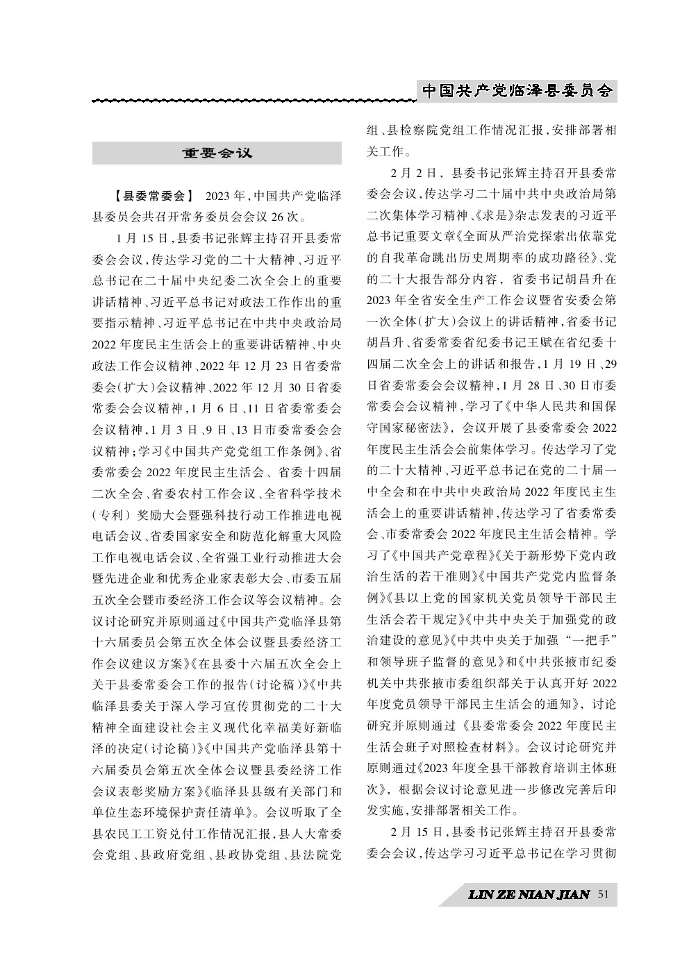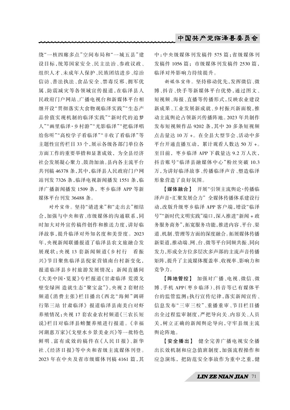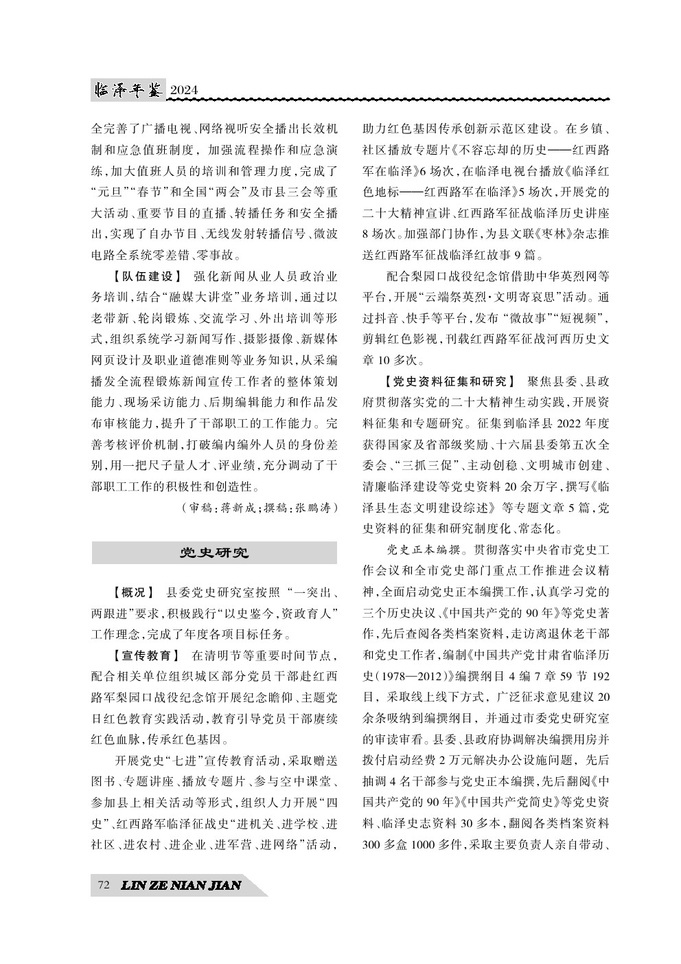 《临泽年鉴》(2024)中国共产党临泽县委员会