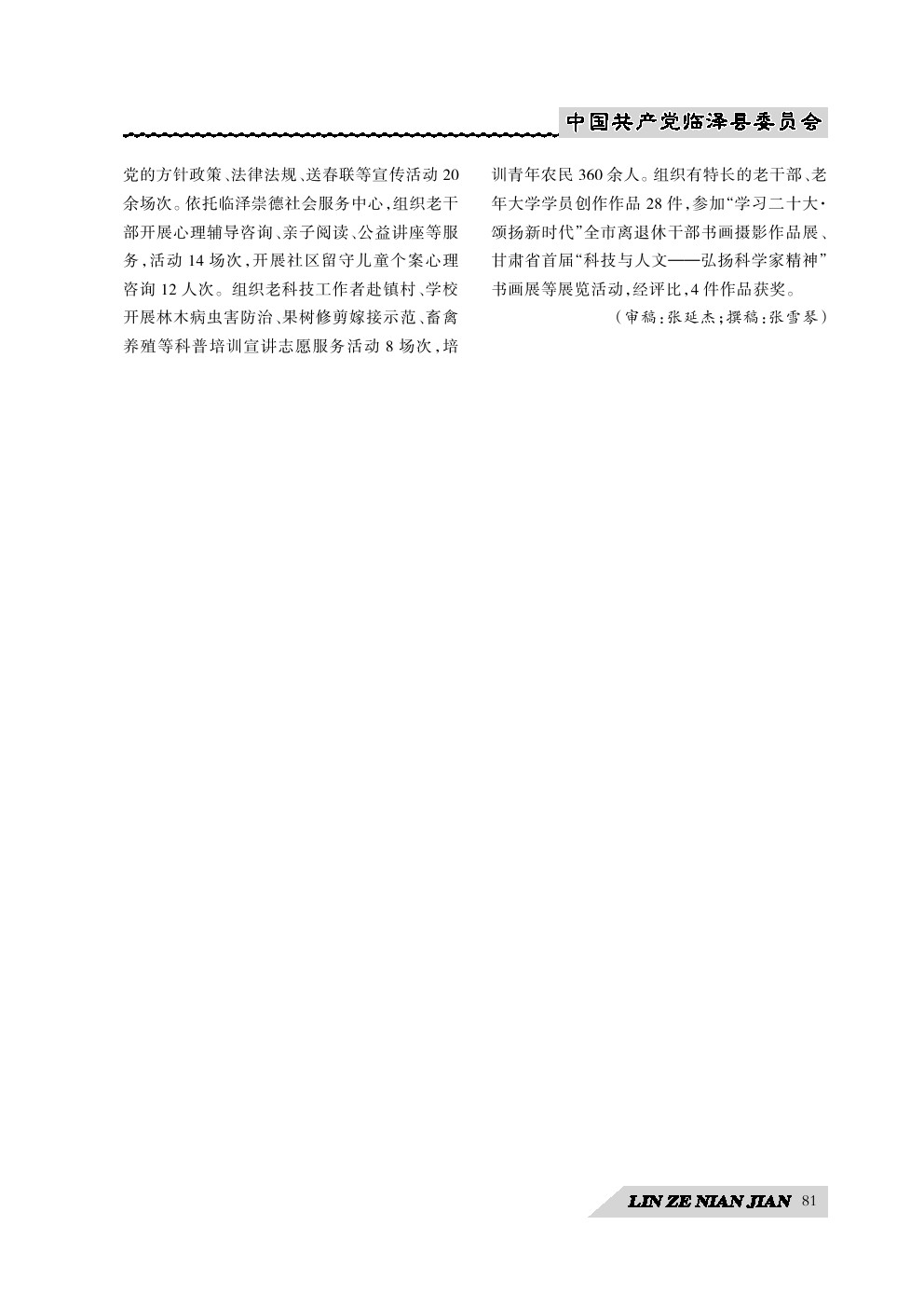 临泽县档案局编辑