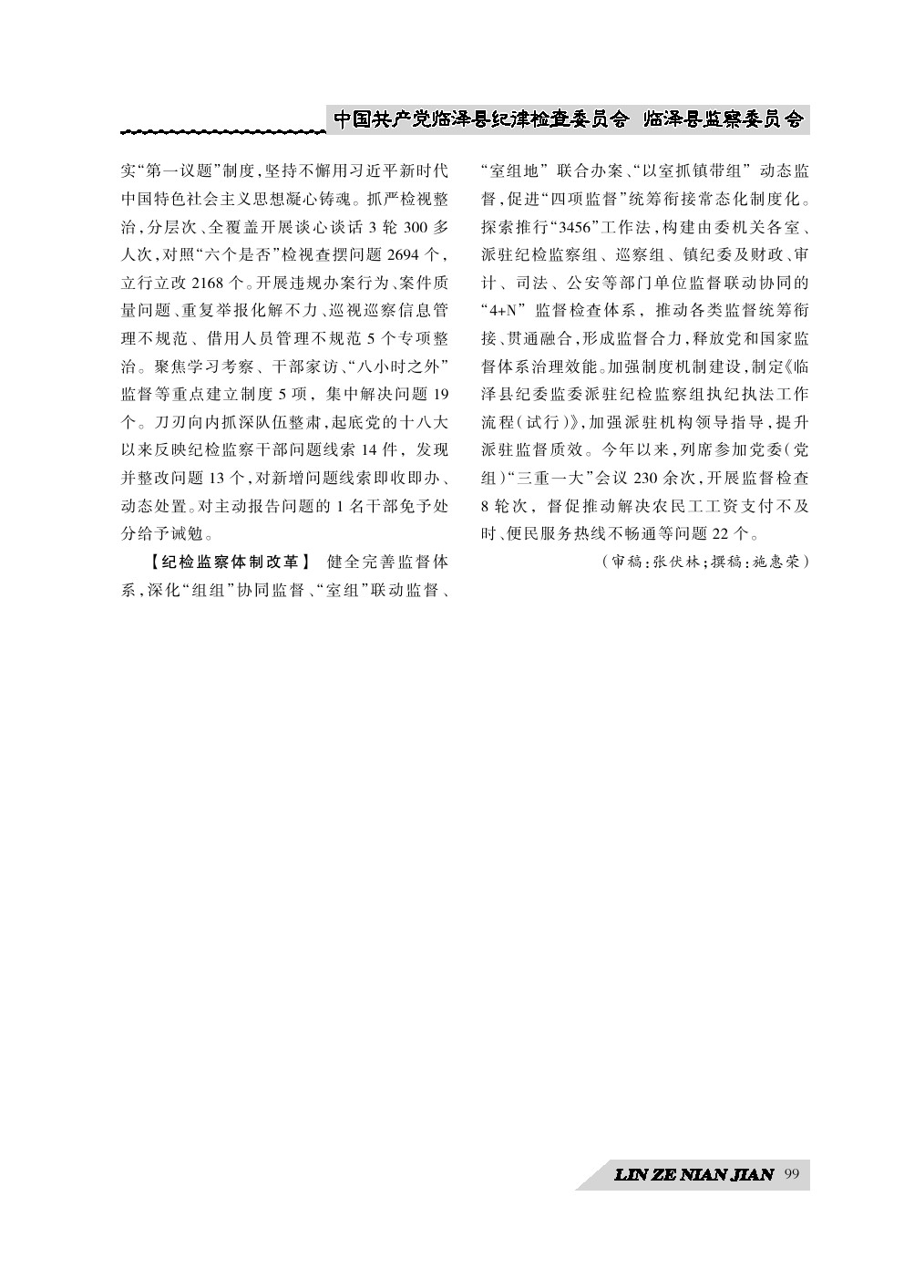 《临泽年鉴》(2024)中国共产党临泽县纪律检查委员会临泽县监察委员会