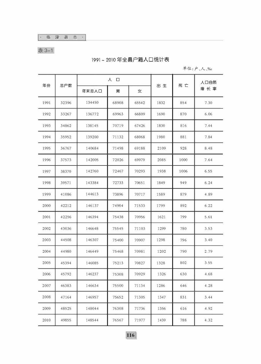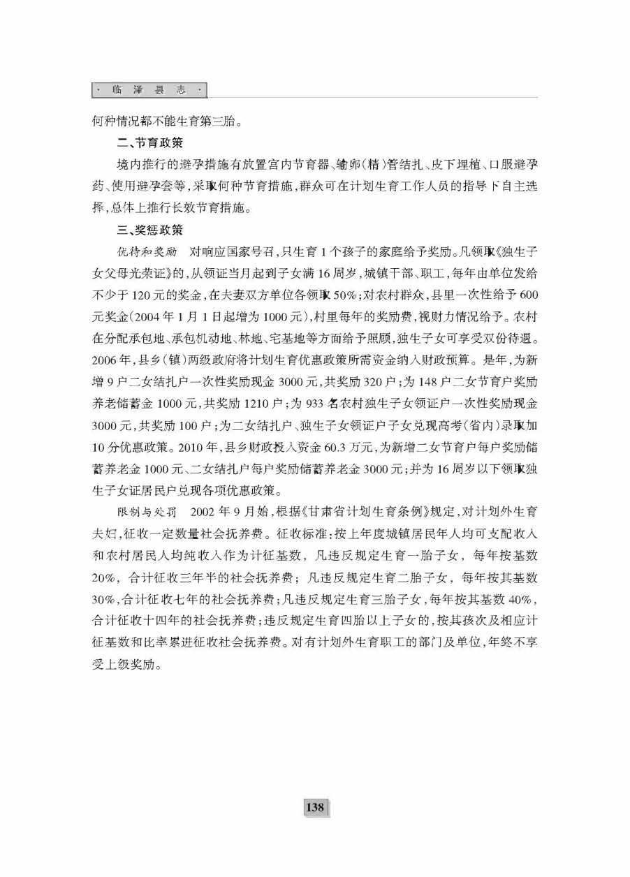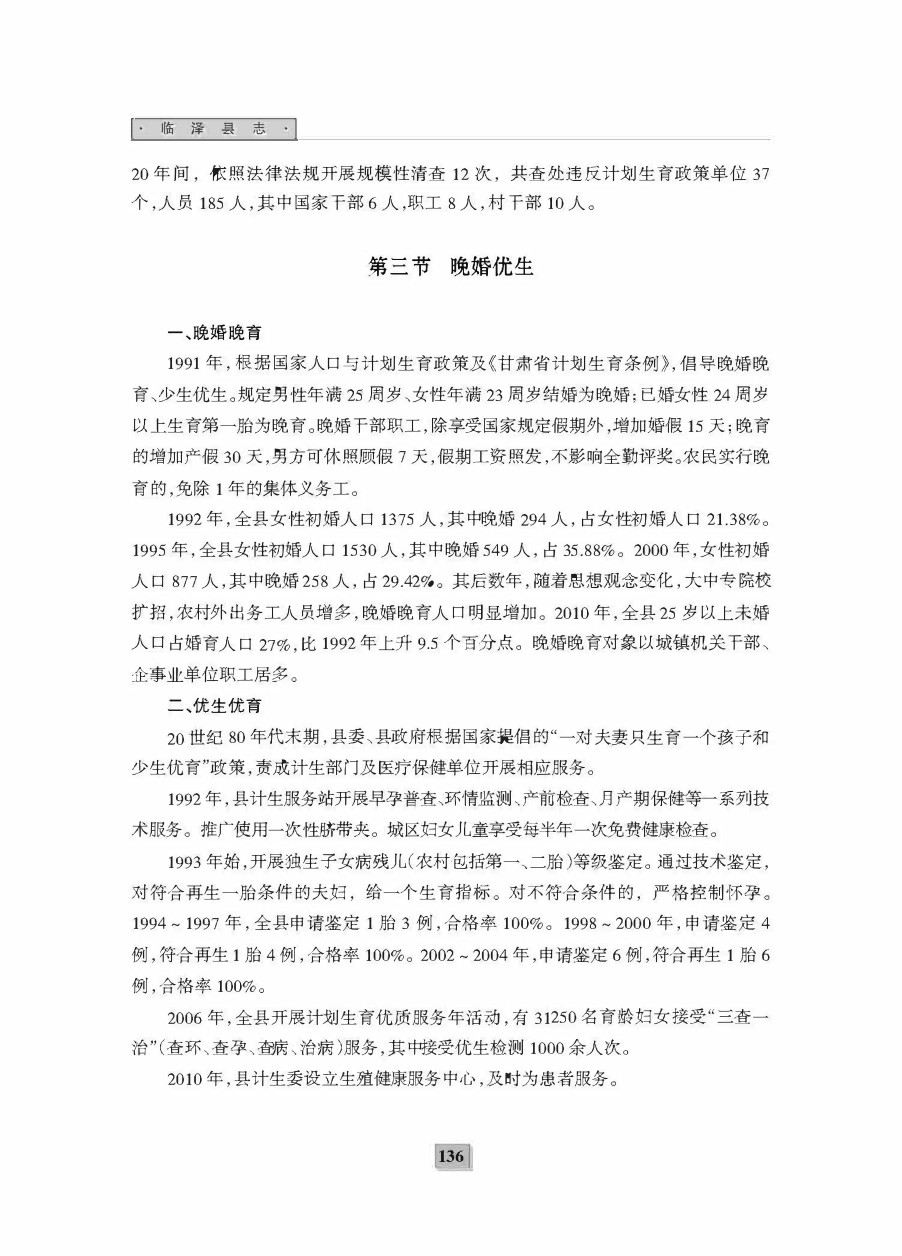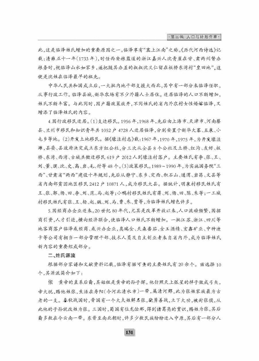 《临泽二轮县志》第三编 人口与计划生育